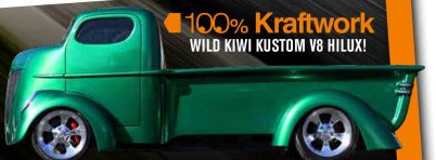 “Not enough bourbon, or maybe too much!” laughed the Kiwi. “There weren’t any large problems, just the odd change to make it work as we went along.” Once they had the custom body laid over the ‘Lux chassis, they knew they needed a killer colour for Big Shed Custom’s Steve to lay down. Again, they chose the harder path coming up with a custom colour they call Peculiar Green.